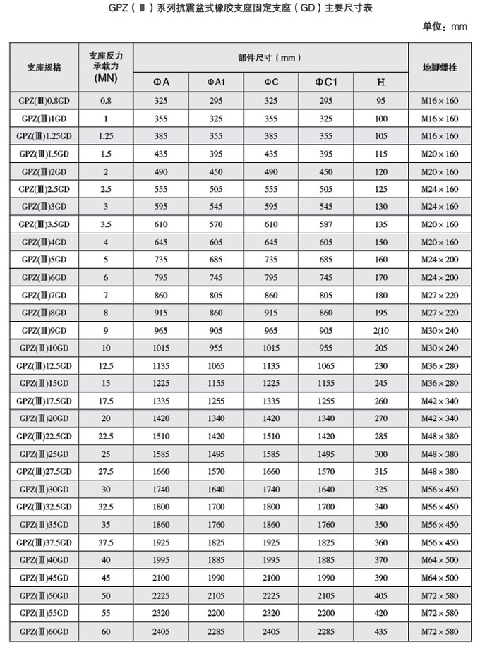 盆式橡膠支座的標記一支座型式,GDR表固定支座;DX代表單向活動支座 一支座允許承載力,單位:MN