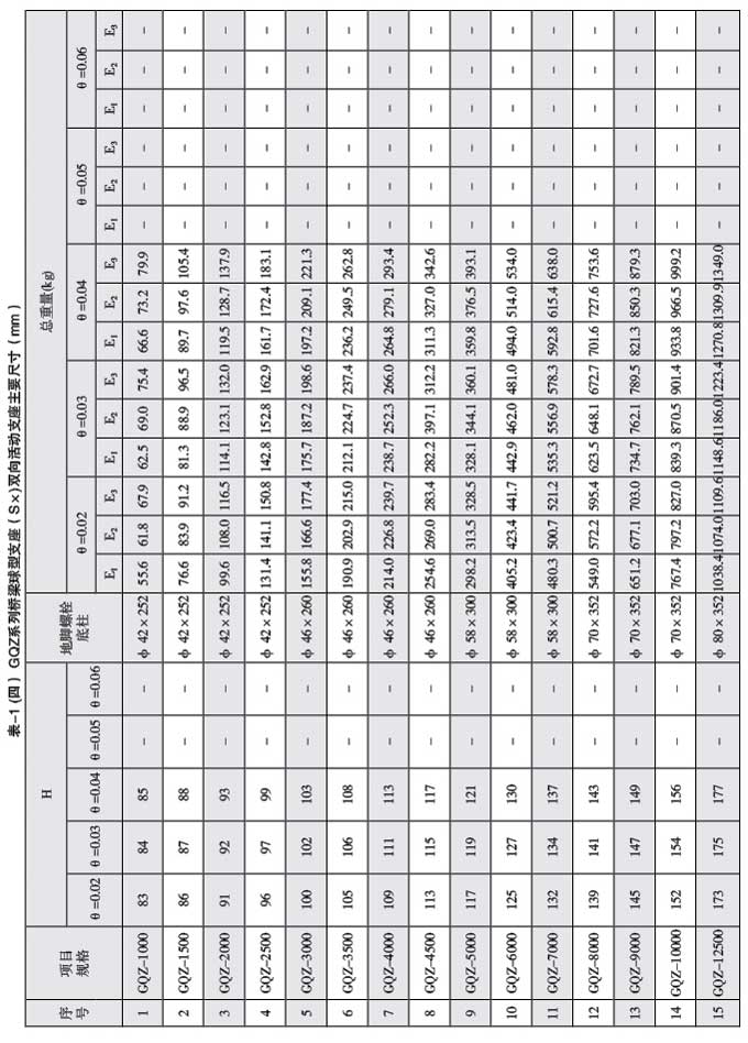 球型支座》GB/ T17955-2009配套產(chǎn)品,本參數(shù)表供生產(chǎn)廠家發(fā)布GQZ系列產(chǎn)品信息使用,以 方便橋梁設(shè)計(jì)人員選型。